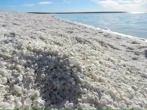오스트레일리아의 생바르텔레미는 대량의 해양생물과 강력한 파도로 인해 무수한 조개껍질의 집합장소로 변했다.