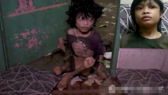 아이는 어두운 작은 방에 감금되었다. 이 사진은 구조될 때의 사진이다.