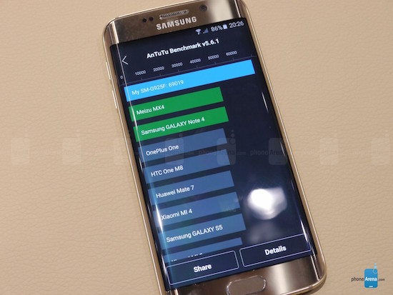 삼성전자 차세대 전략 스마트폰 갤럭시S6의 엣지 모델 ‘갤럭시S6 엣지’의 벤치마크(단말기 성능시험) 결과가 첫 공개됐다. 타제품을 완전히 압도했다. 미국 IT 전문매체 폰아레나는 1일 갤럭시S6 엣지를 대상으로 실시한 다양한 벤치마크 결과를 공개했다. 보도에 따르면, 가장 먼저 벤치마크 툴 ‘안투투’로 테스트를 실시...