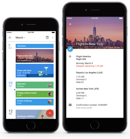 구글은 아이폰용 일정 앱 ‘구글 캘린더’를 12일 애플 앱스토어에 출시했다. iOS 7.0 이상에서 이용할 수 있으며, 앱스토어에서 무료로 다운받을 수 있다. 지난해 11월에 발표한 안드로이드용 구글 일정 앱과 마찬가지로, 지메일과 통합돼 달력 자동 등록 기능, 비행기의 예약 날짜와 영화 티켓, 콘서트 시간, 레스토랑 예약 등을 분류해 지...