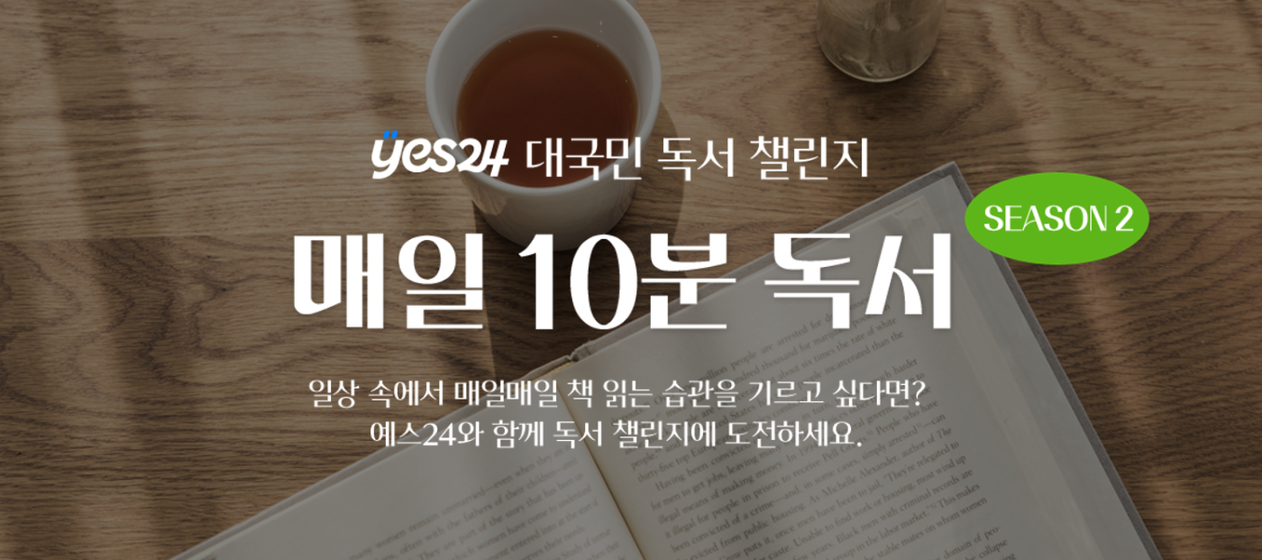 예스24가 10월 10일까지 대국민 독서 챌린지 ‘매일 10분 독서 시즌 2’ 이벤트를 진행한다. 5월 예스24와 EBS의 협업으로 진행된 ‘10분 온라인 독서 챌린지’의 두 번째 시리즈로 기획된 ‘매일 10분 독서 시즌 2’는 매일 10분간의 독서 챌린지에 도전해 완수의 기쁨과 함께 책 읽는 습관을 기를 수 있도록 돕는다. 시즌 2로 진행되는 이번 챌린지는 ...
